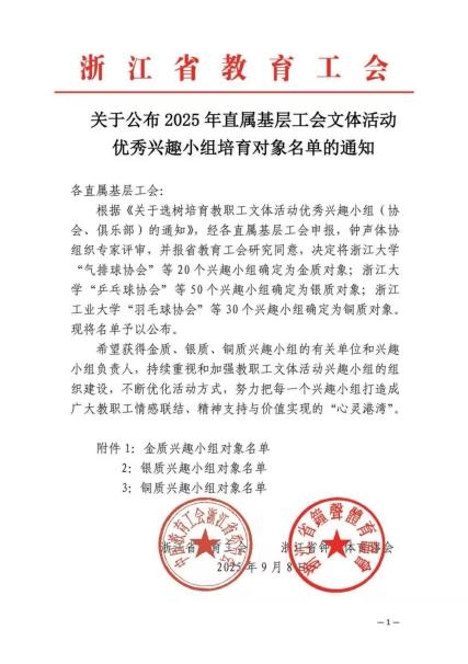 近日,浙江省总工会、教育工会公布了2025年直属基层工会文体活动优秀兴趣小组培育对象名单,学校“指尖生花”传统技艺兴趣小组荣获银质兴趣小组,优雅瑜伽兴趣小组荣获铜质兴趣小组。此次获奖,是对学校教职工文体协会建设与发展成果的充分肯定,也展现了学校教职工昂扬向上的精神风貌。