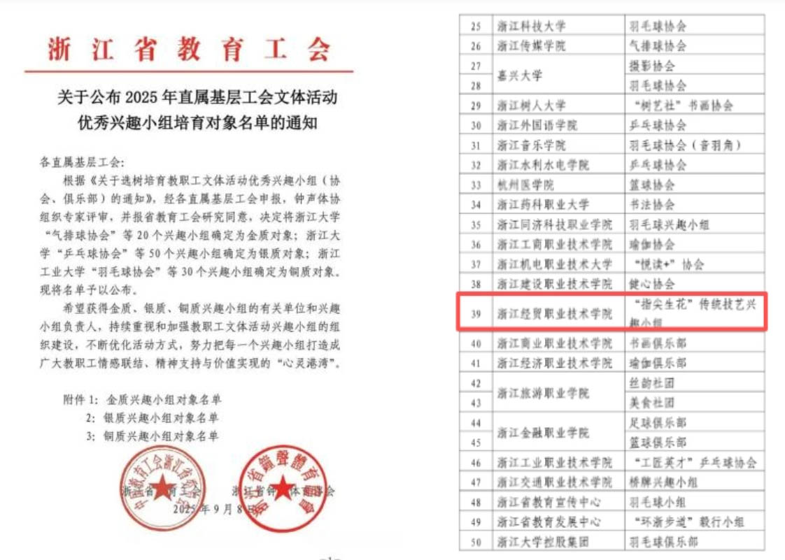一银一铜,学校两个工会小组入选2025年浙江省教育工会直属基层工会文体活动优秀兴趣小组培育对象名单